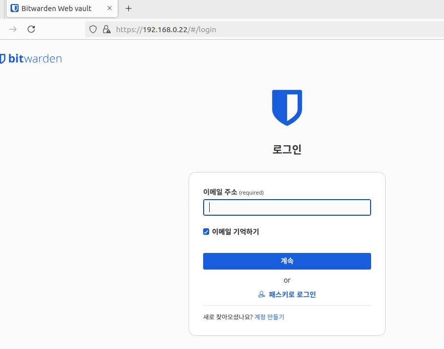 • bitwarden 웹 접속