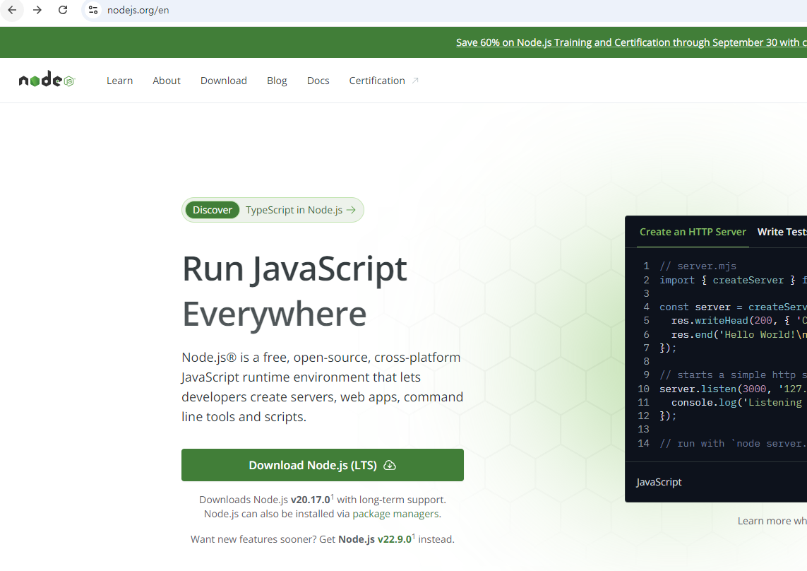 • node 설치 된 경로에 파일들이 위치하고 있어야 node server.js 실행이 가능