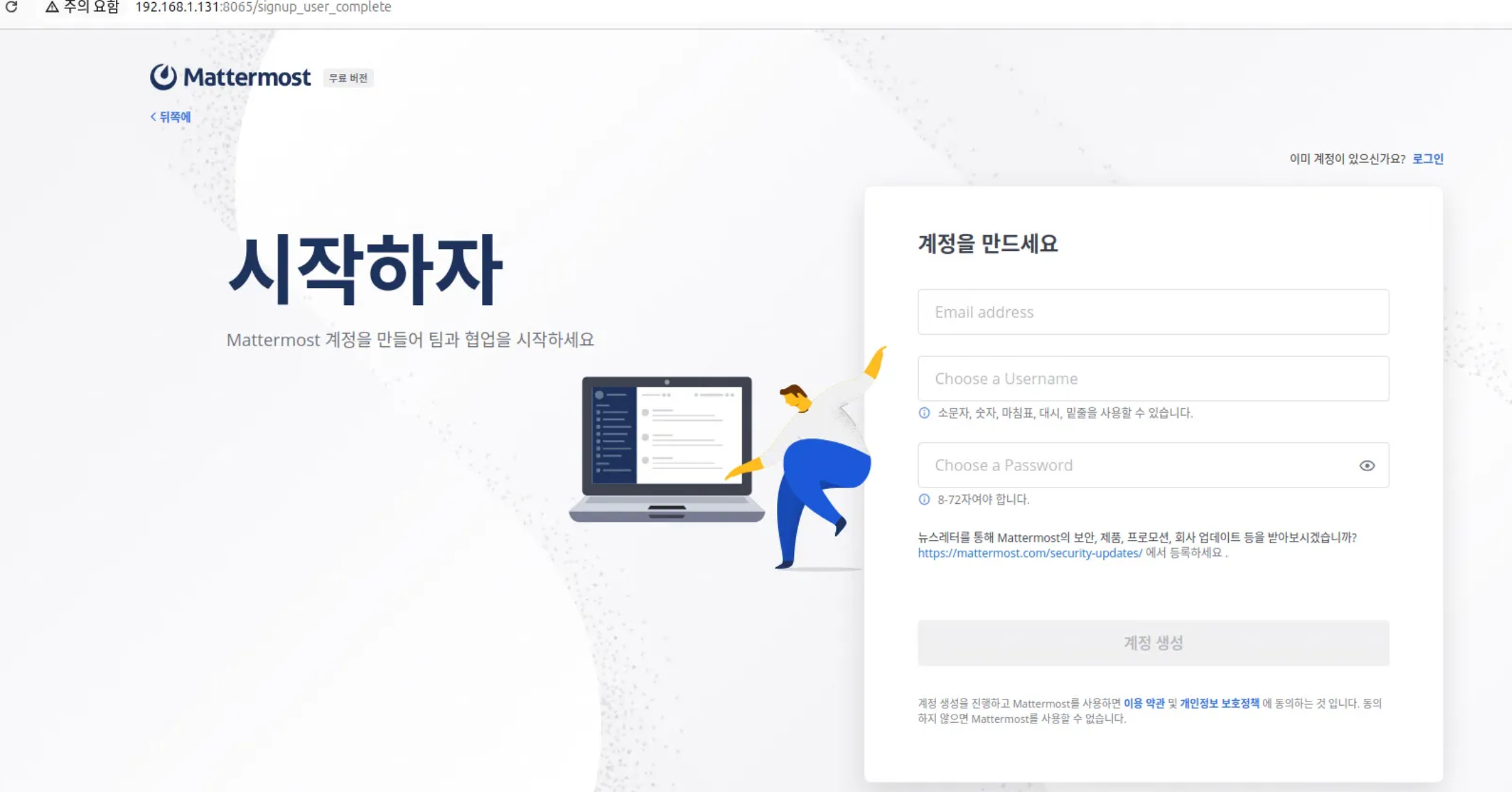 • Mattermost 컨테이너 실행