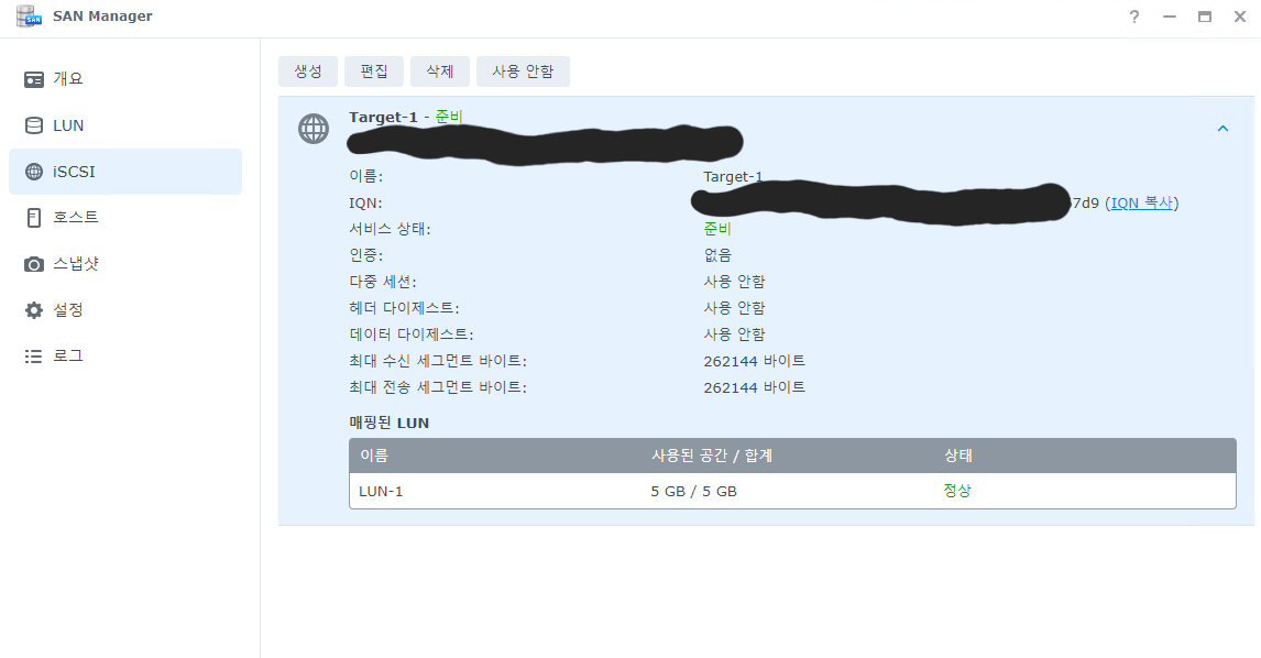 SAN Manager > iSCSI 사용법