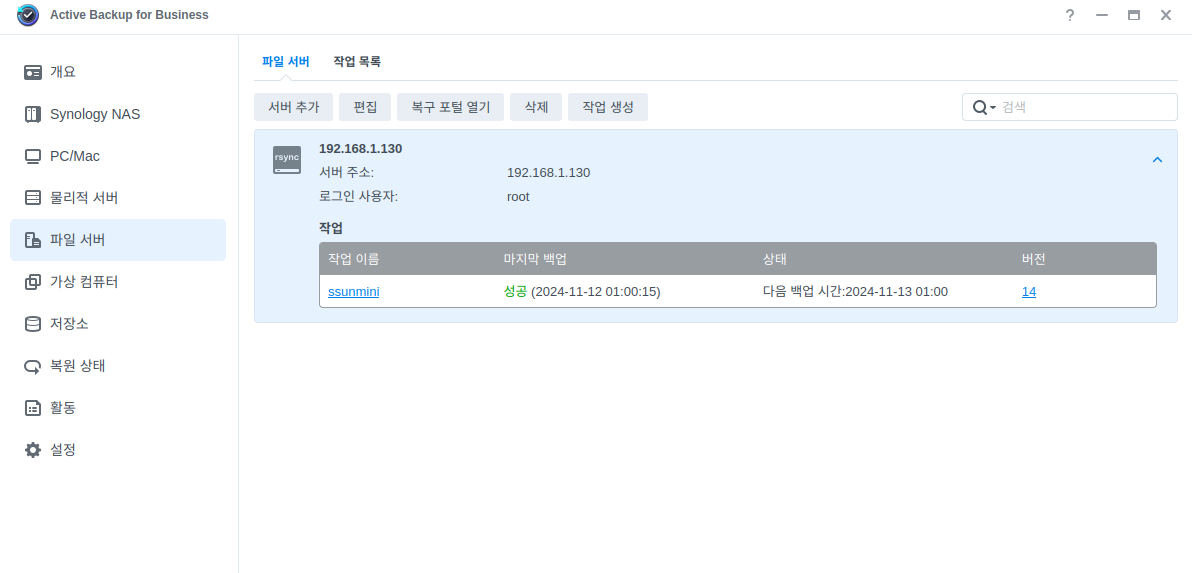 Active Backup for Business 설치